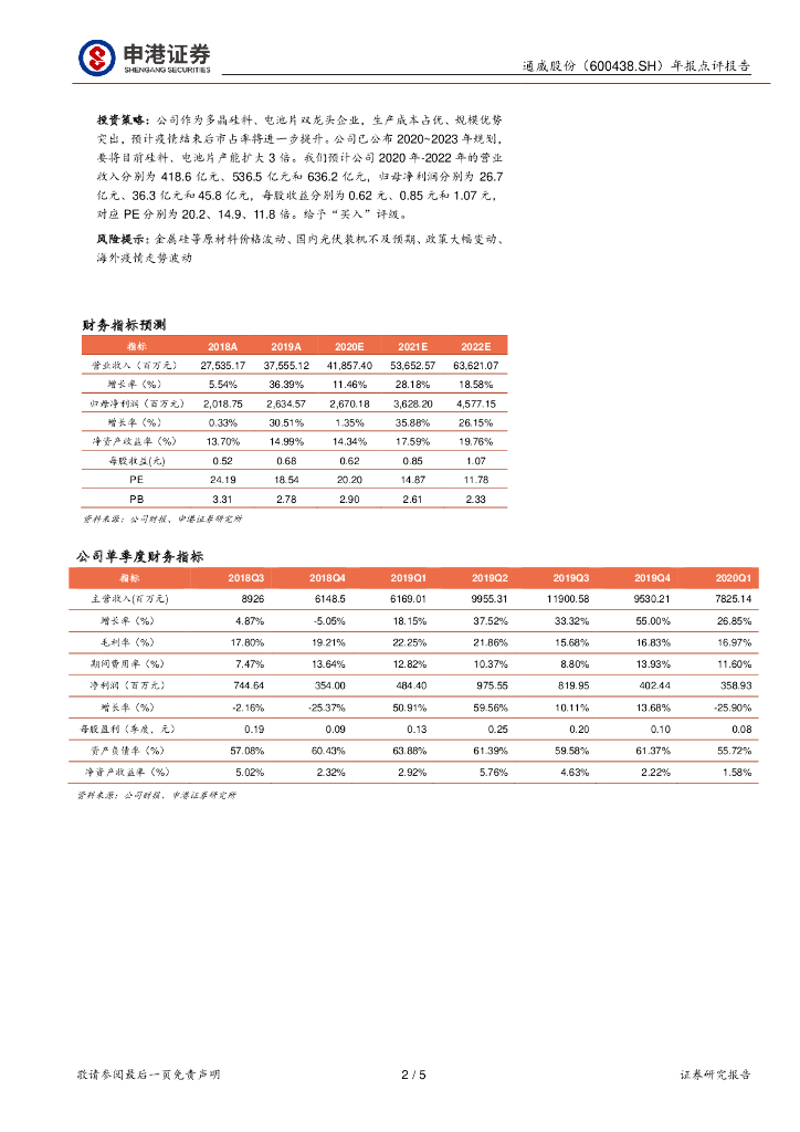 申港证券:通威股份(600438)-年报点评:业绩短期承压 静待下半年盈利回升.pdf