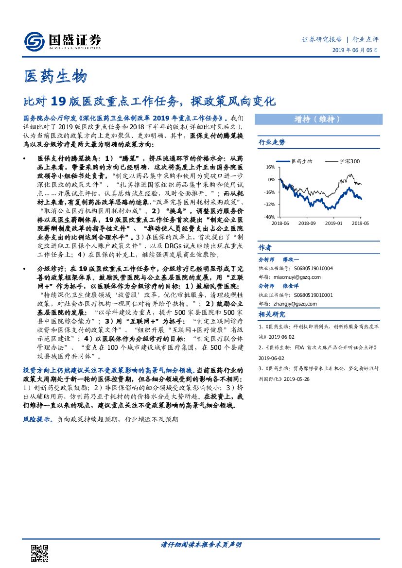 国盛证券:医药生物:比对19版医改重点工作任务,探政策风向变化.pdf