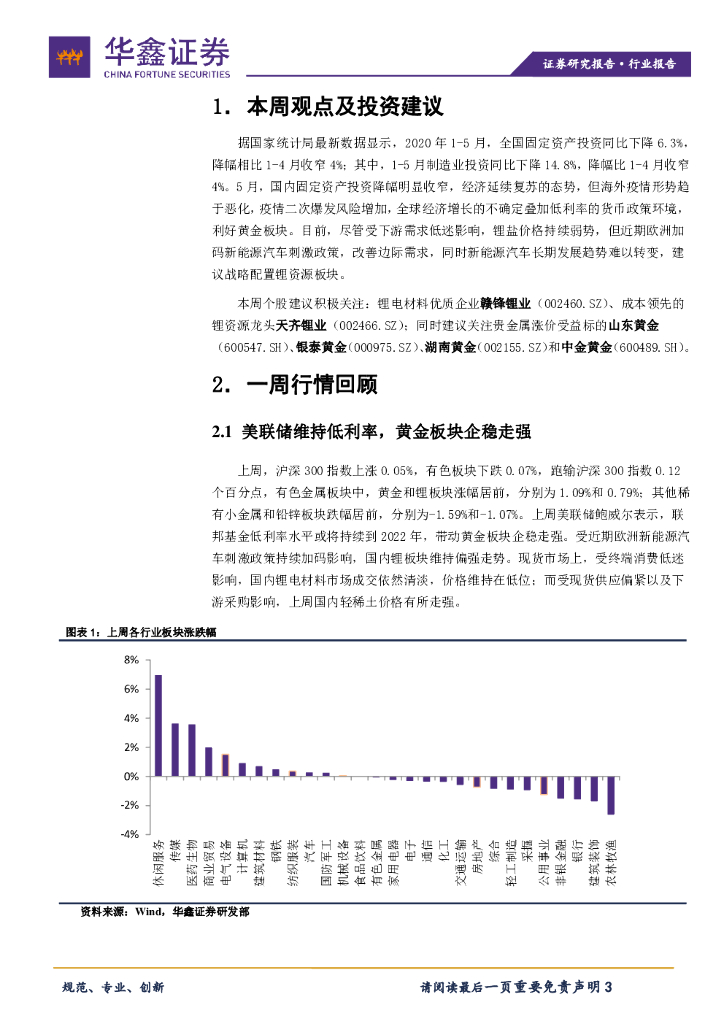 华鑫证券:有色金属行业周报:黄金维持强势,关注锂板块配置价值.pdf