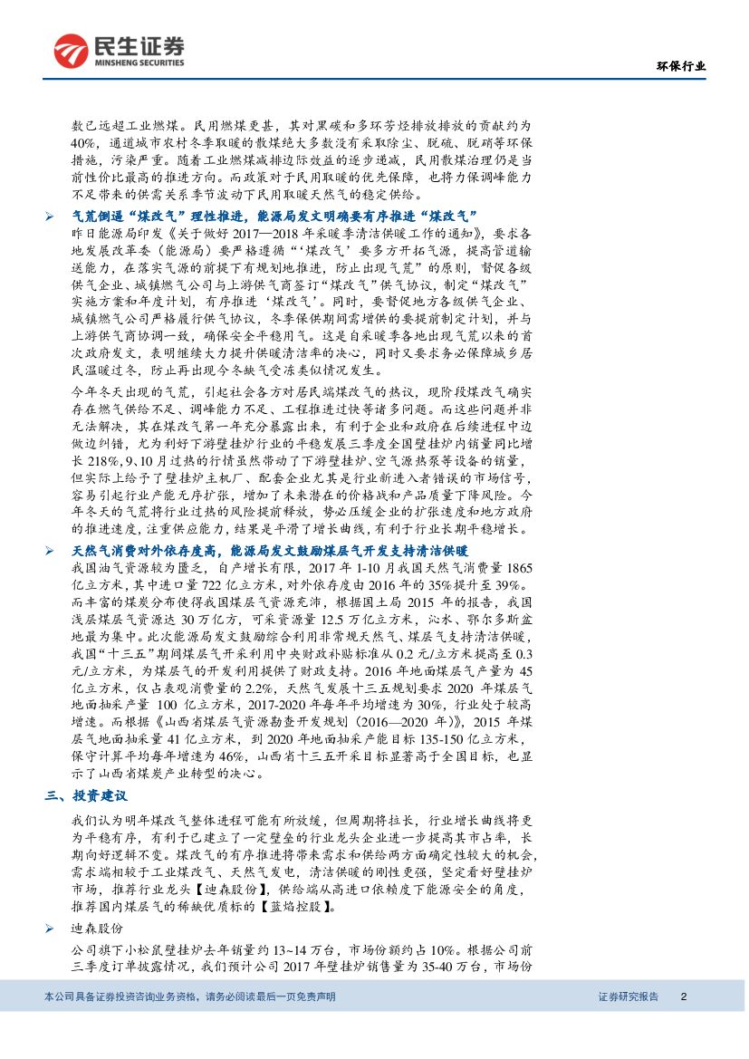 民生证券:环保行业简评报告:《 国家能源局关于做好2017—2018年采暖季清洁供暖工作的通知》点评-清洁供暖并非气荒主因,坚定看好壁挂炉和煤层气.pdf