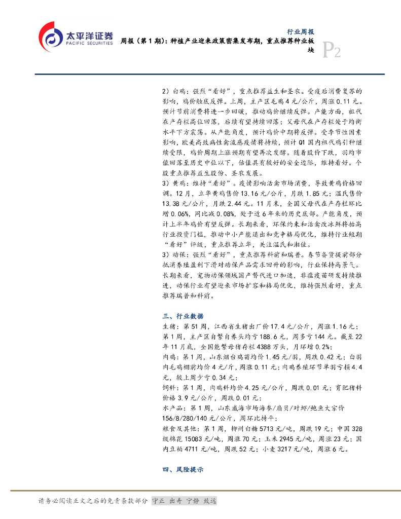 太平洋证券:农林牧渔周报(第1期):种植产业迎来政策密集发布期,重点推荐种业板块.pdf