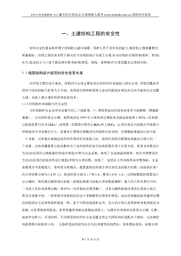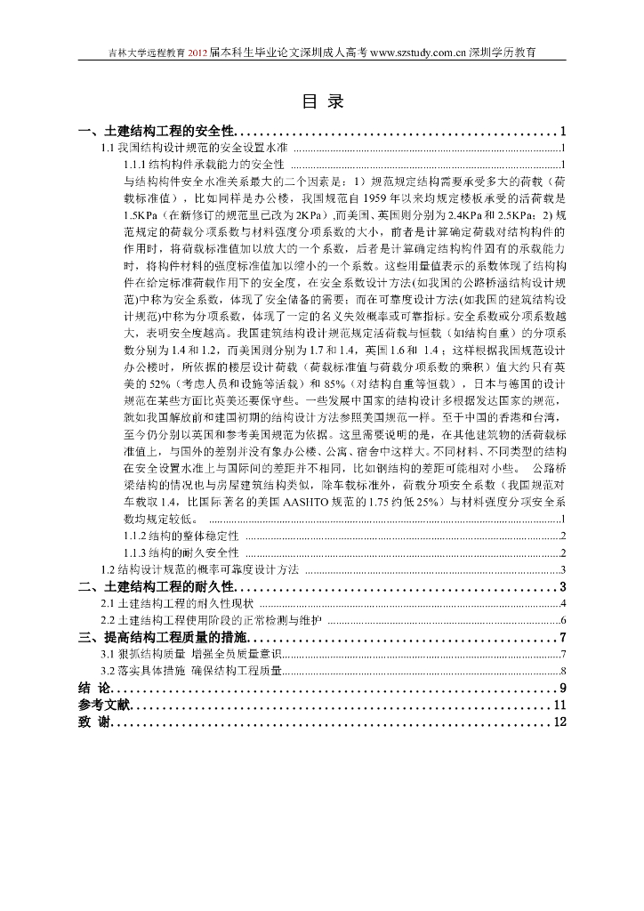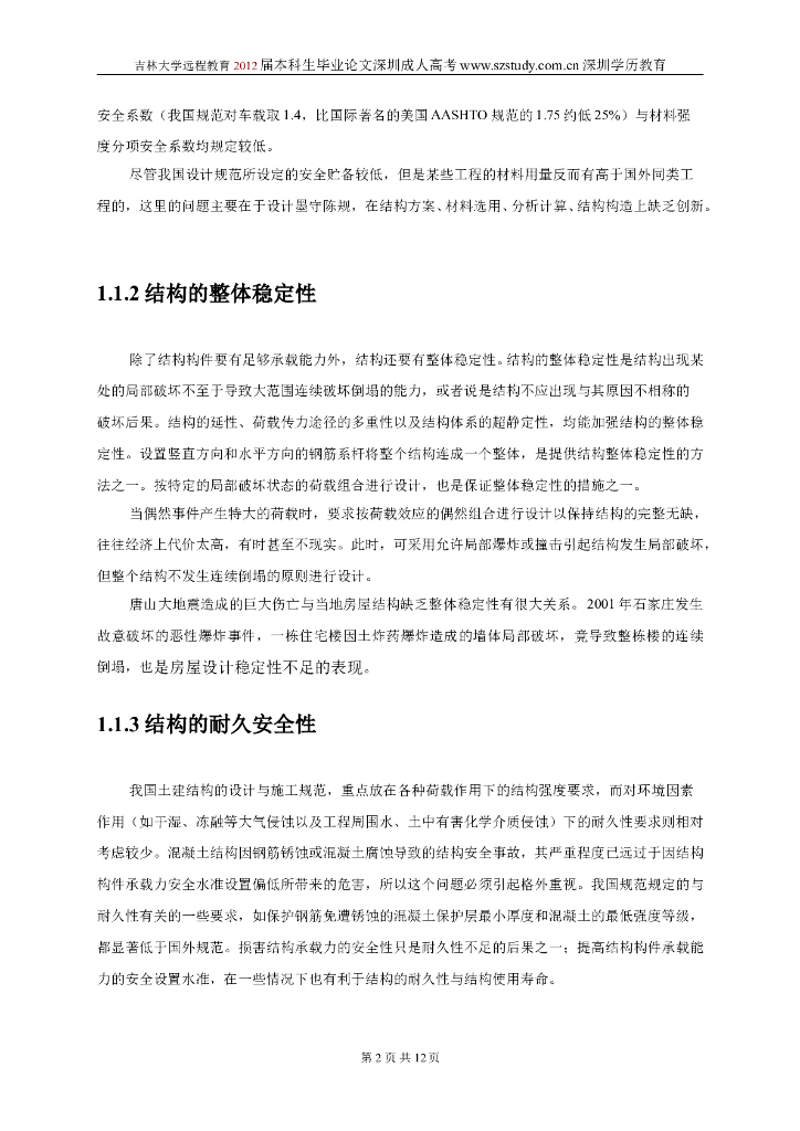 吉林大学远程教育本科毕设-土建结构工程的安全性与耐久性.doc