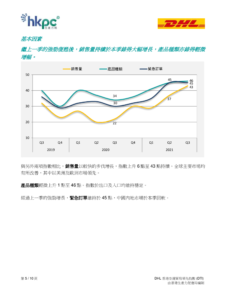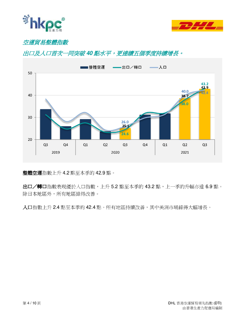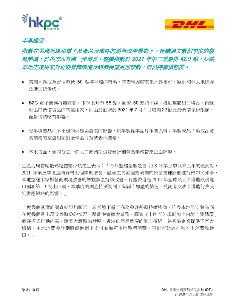 香港生产力促进局:2021年第三季度DHL香港空运贸易领先指数(DTI)报告(繁体版).pdf