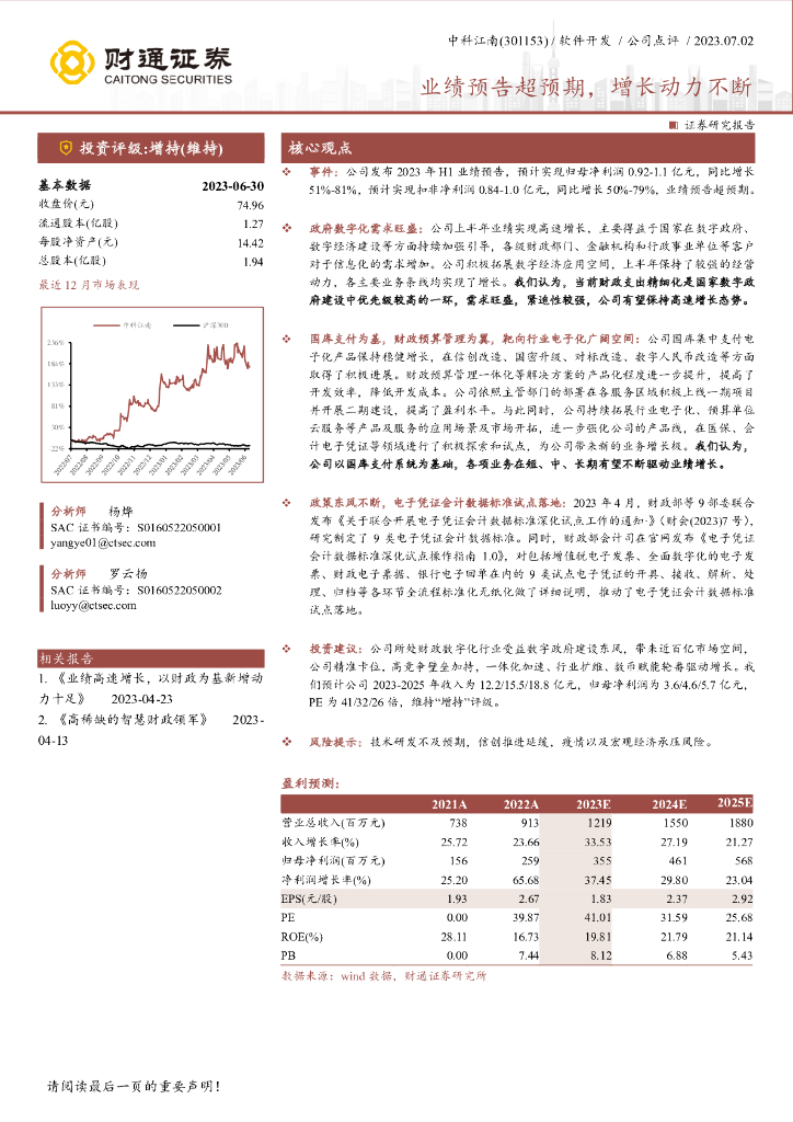 财通证券:中科江南(301153)-业绩预告超预期,增长动力不断.pdf