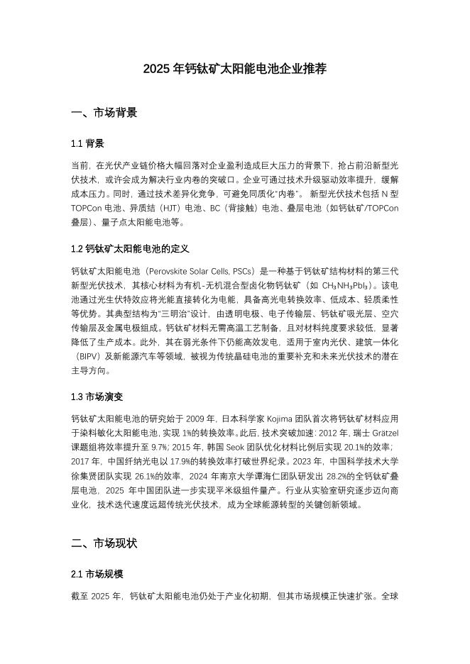 头豹研究院:2025年钙钛矿太阳能电池企业推荐突破传统界限,实现光电转换效率的新飞跃.pdf
