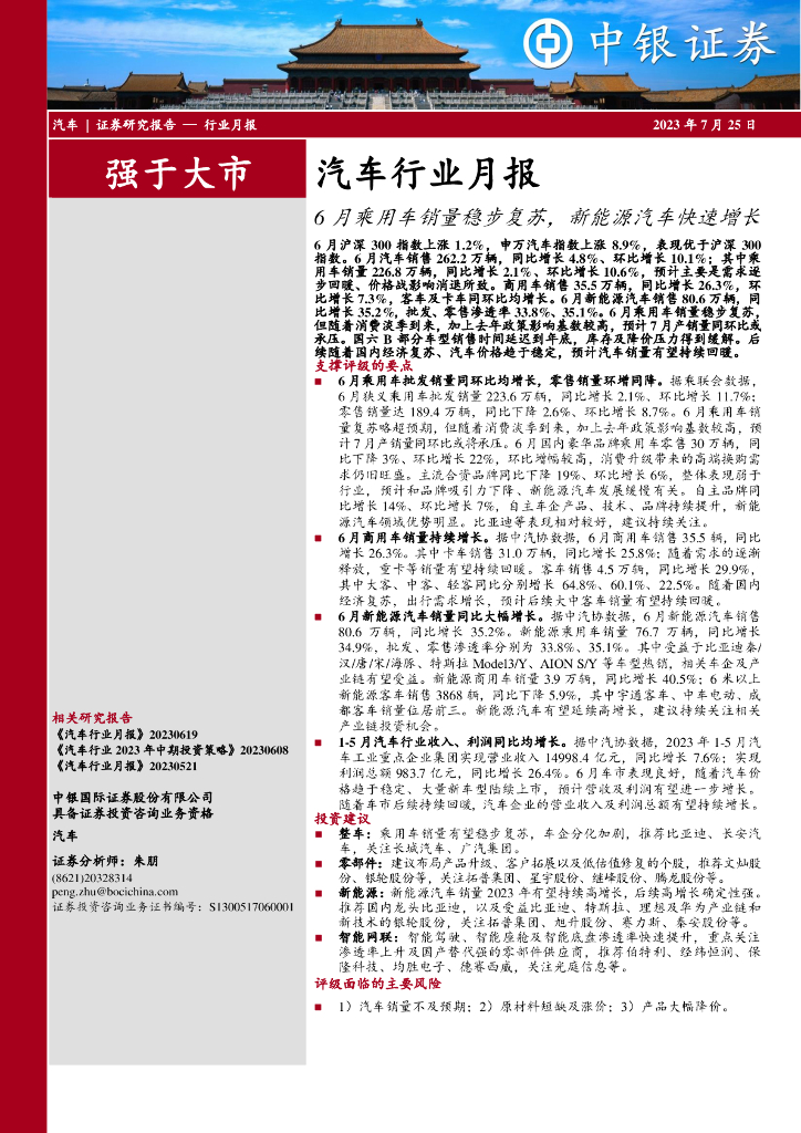 中银证券:汽车行业月报:6月乘用车销量稳步复苏,新能源汽车快速增长.pdf