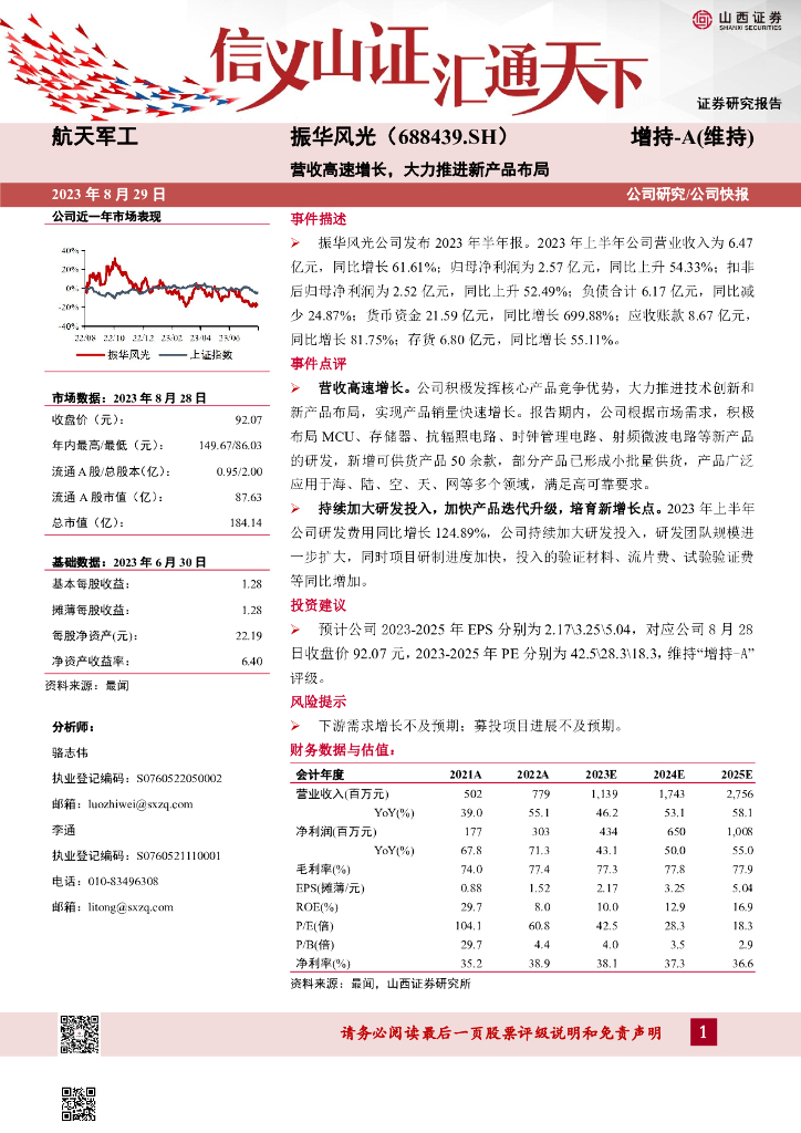山西证券:振华风光(688439)-营收高速增长,大力推进新产品布局.pdf