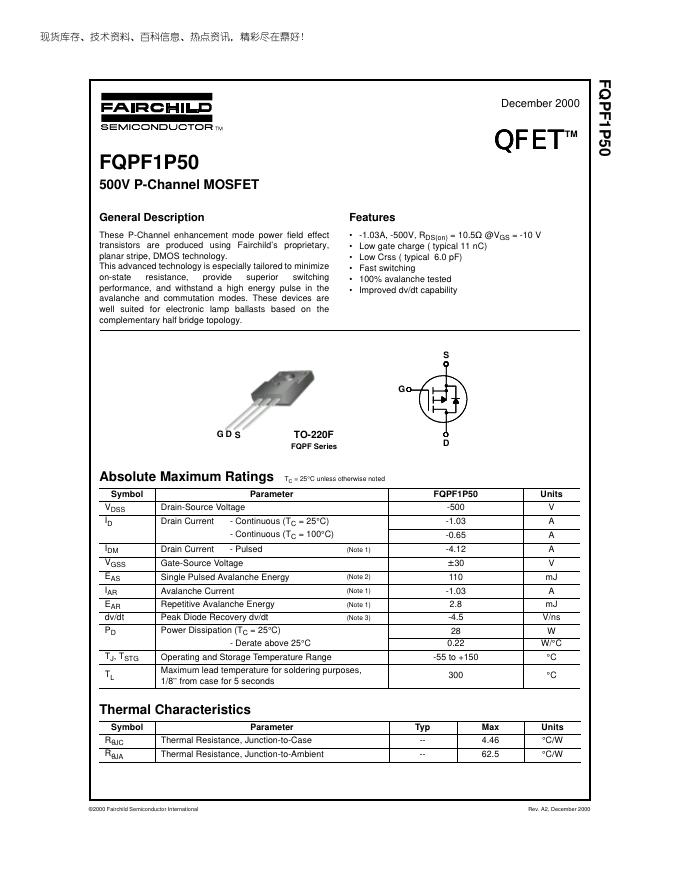 FAIRCHILD FQPF1P50 数据手册.pdf