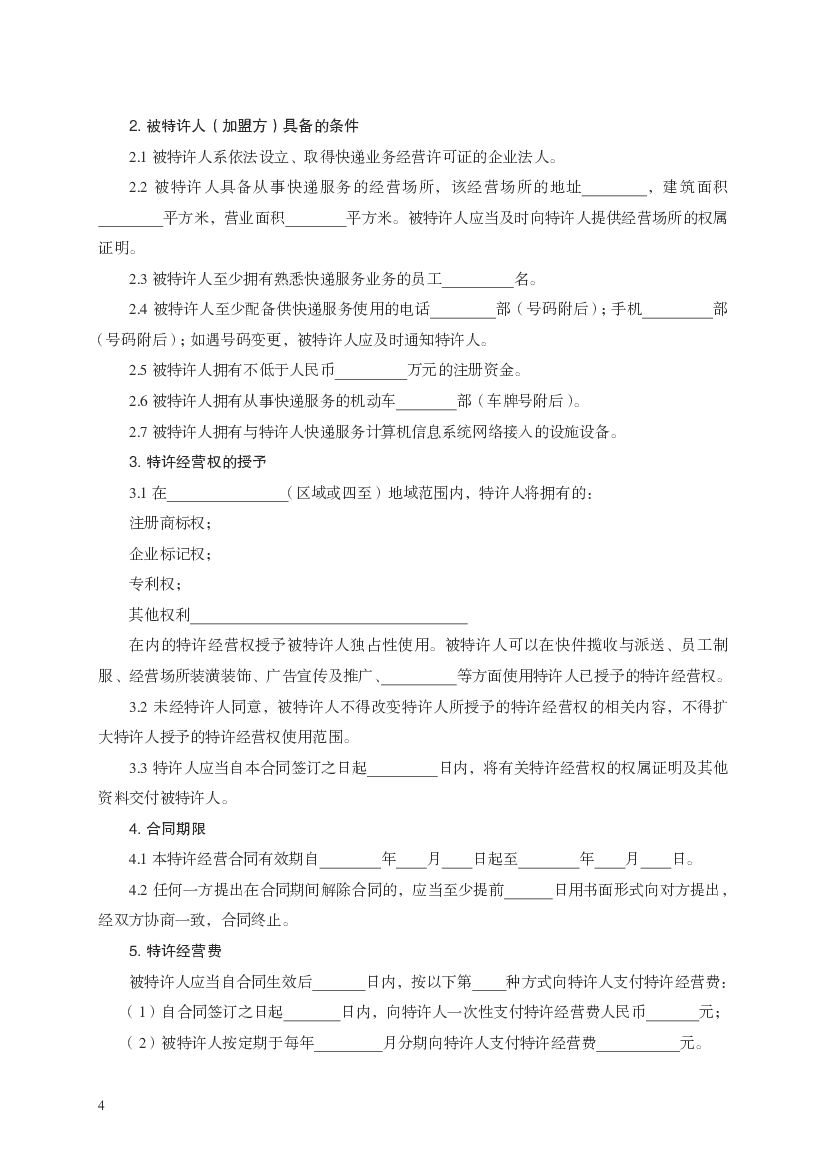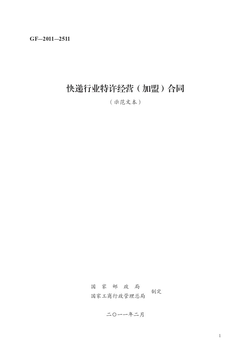 GF-2011-2511 国家邮政局:快递行业特许经营(加盟)合同(示范文本).pdf