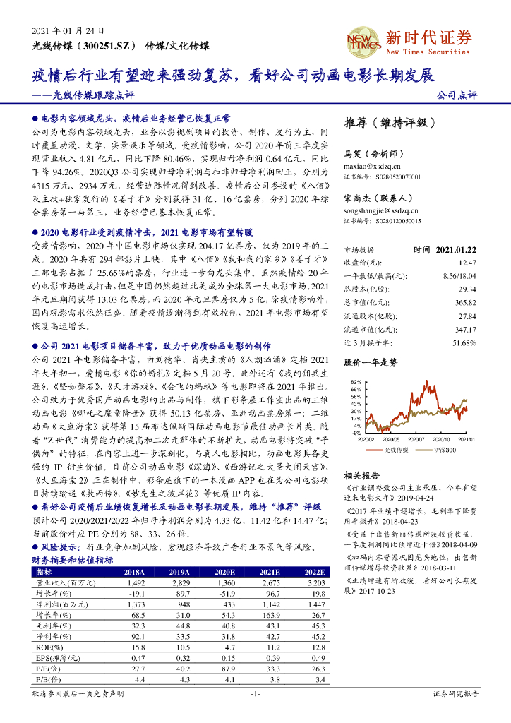 新时代证券:光线传媒跟踪点评:疫情后行业有望迎来强劲复苏,看好公司动画电影长期发展.pdf