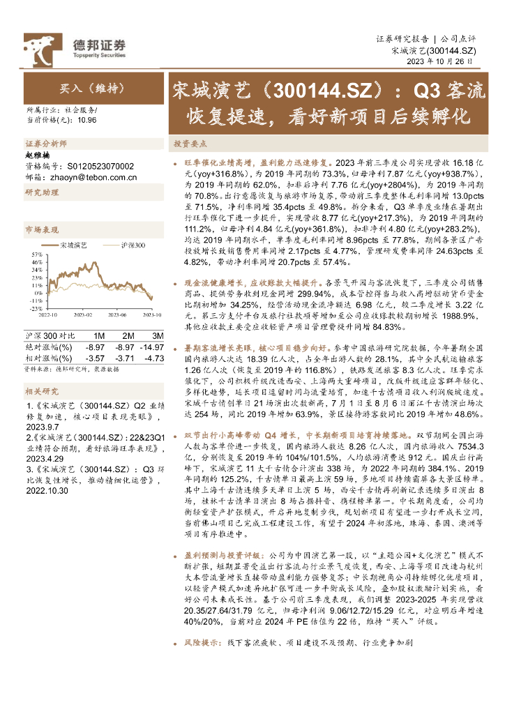 德邦证券:宋城演艺(300144)-Q3客流恢复提速,看好新项目后续孵化.pdf