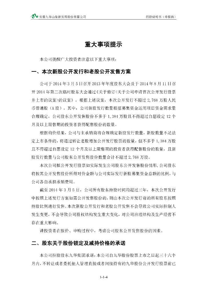 安徽九华山旅游发展股份有限公司上交所主板IPO上市招股说明书.pdf