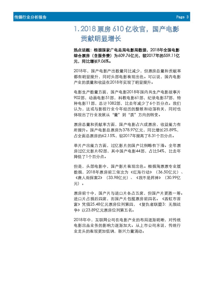 首创证券:文化传媒行业周报:2018票房610亿收官,国产电影贡献明显增长.pdf