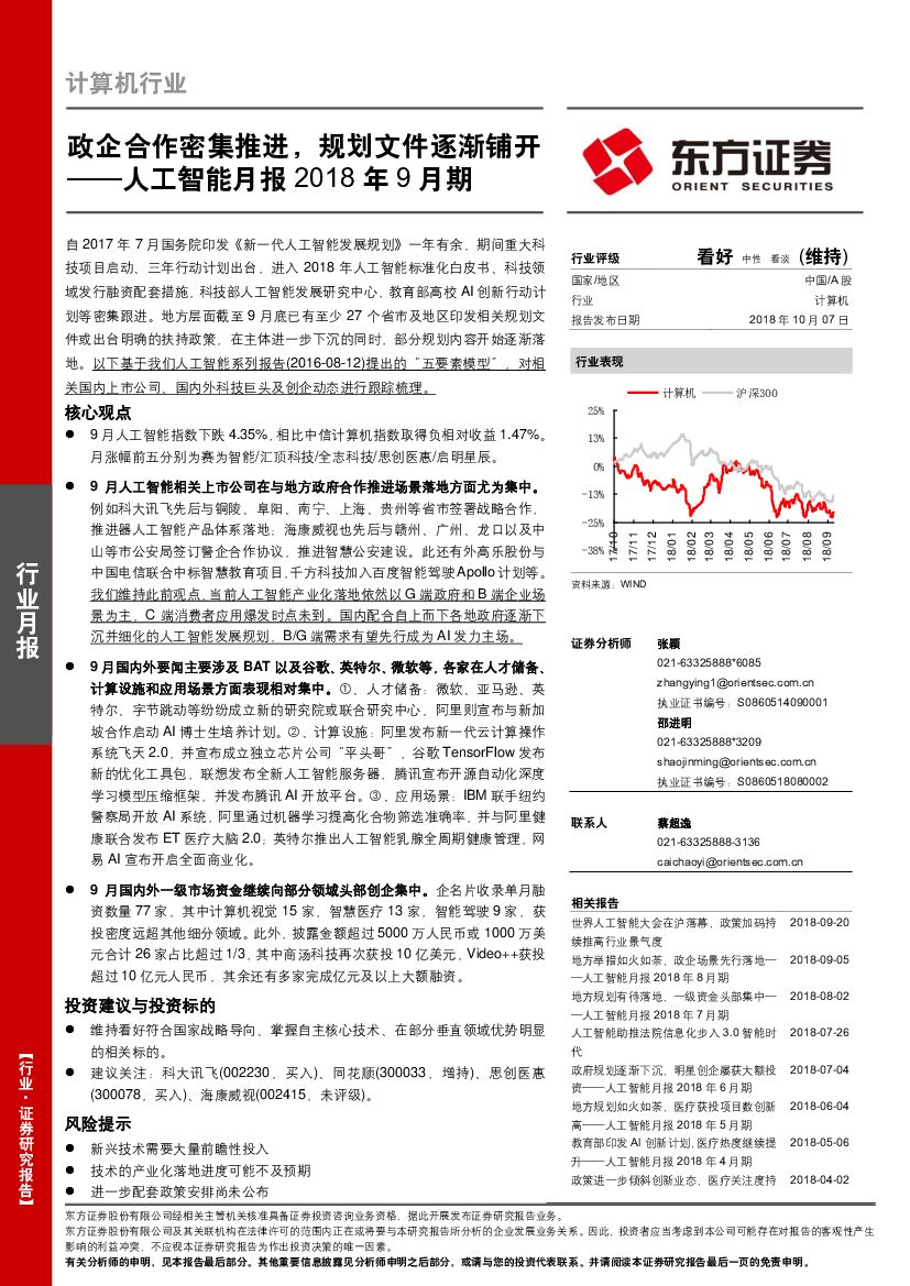 东方证券:人工智能月报2018年9月期:政企合作密集推进,规划文件逐渐铺开.pdf