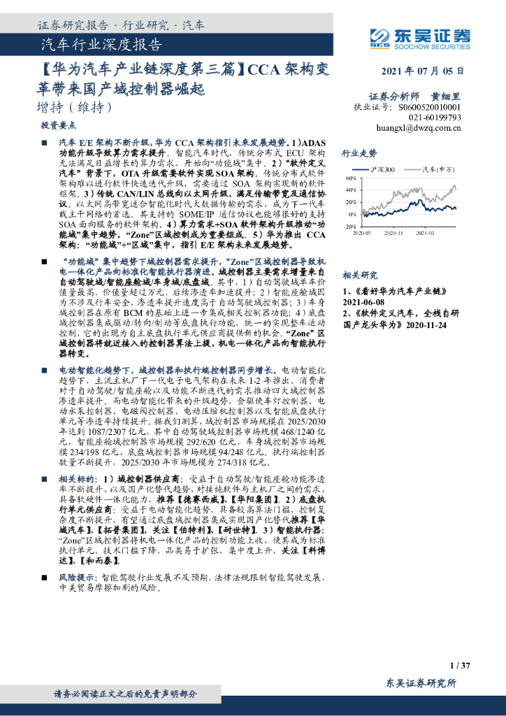 东吴证券:汽车行业深度报告:【华为汽车产业链深度第三篇】:CCA架构变革带来国产域控制器崛起.pdf