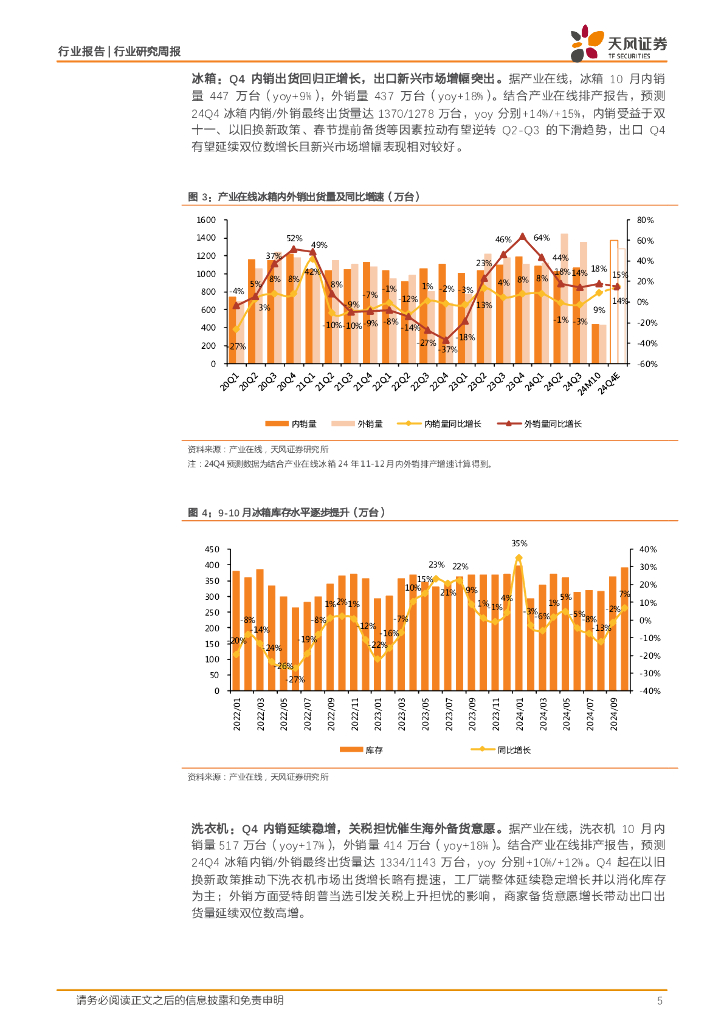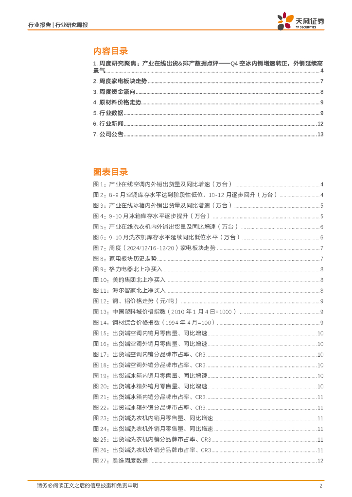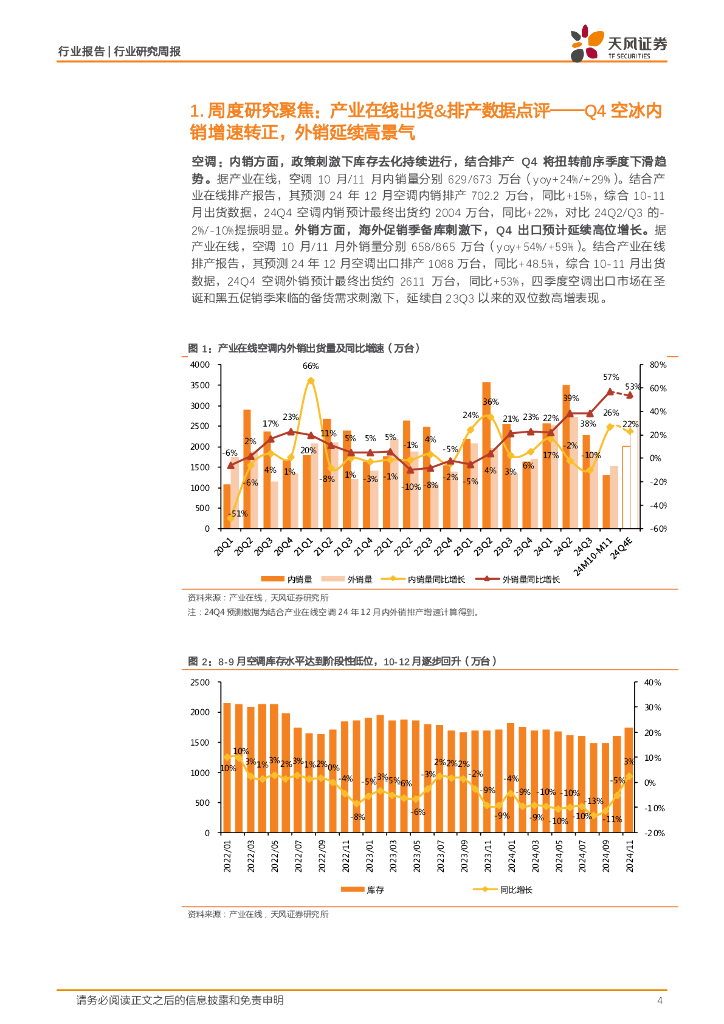 天风证券:家用电器行业24W51周度研究:产业在线出货&排产数据点评,Q4空冰内销增速转正,外销延续高景气.pdf