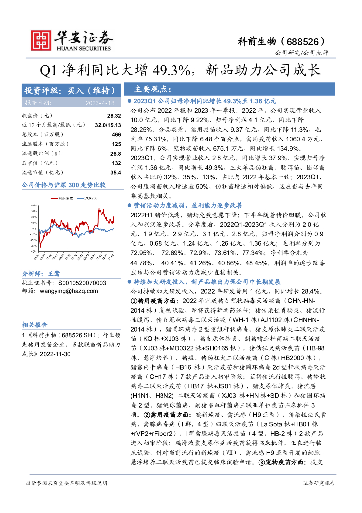 华安证券:科前生物(688526)-Q1净利同比大增49.3%,新品助力公司成长.pdf