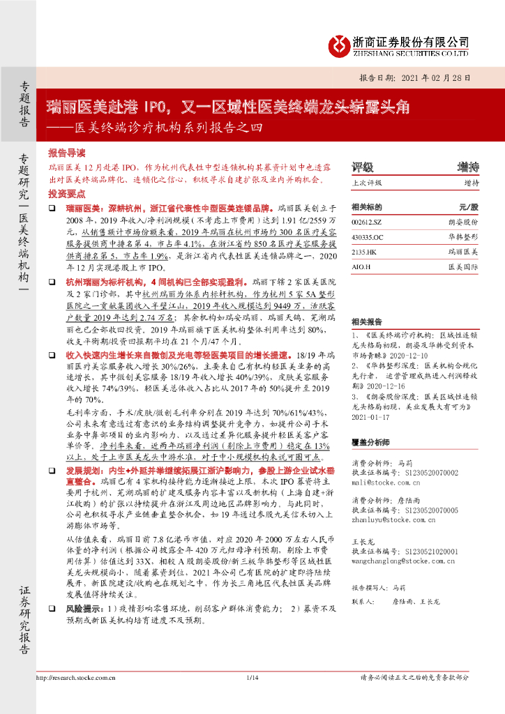 浙商证券:医美终端诊疗机构系列报告之四:瑞丽医美赴港IPO,又一区域性医美终端龙头崭露头角.pdf