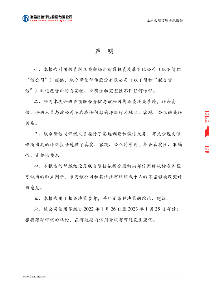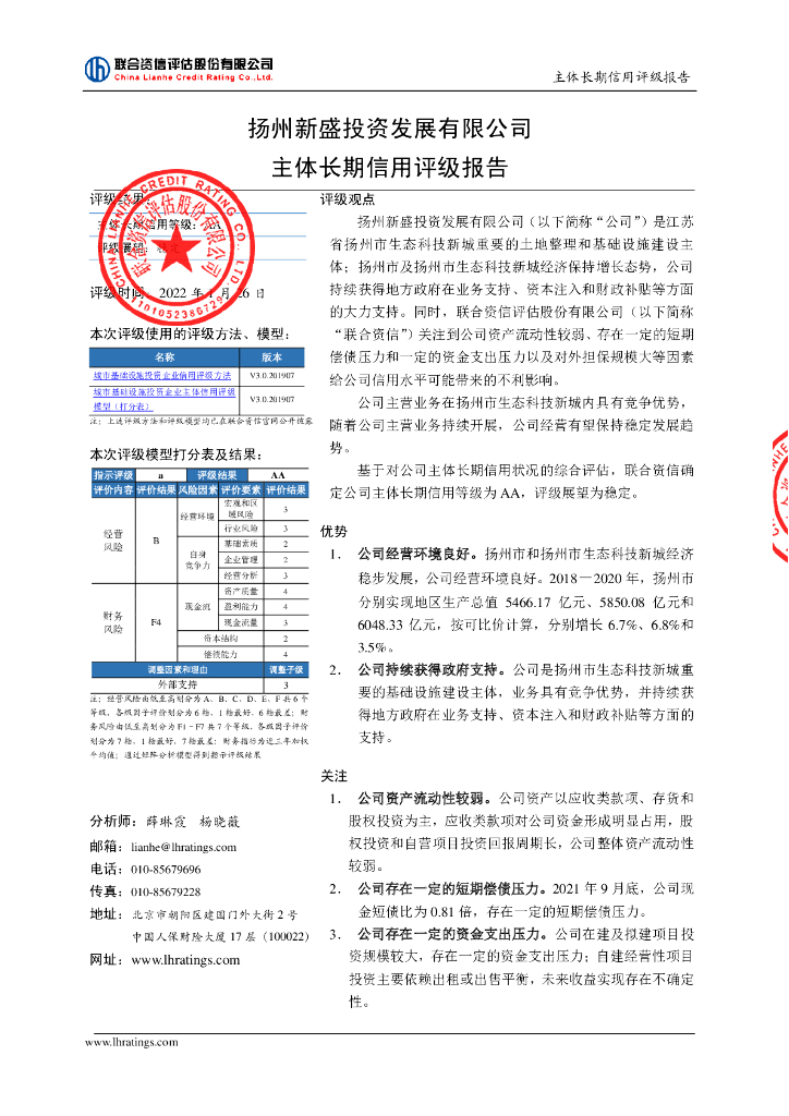 联合资信:扬州新盛投资发展有限公司主体长期信用评级报告.pdf
