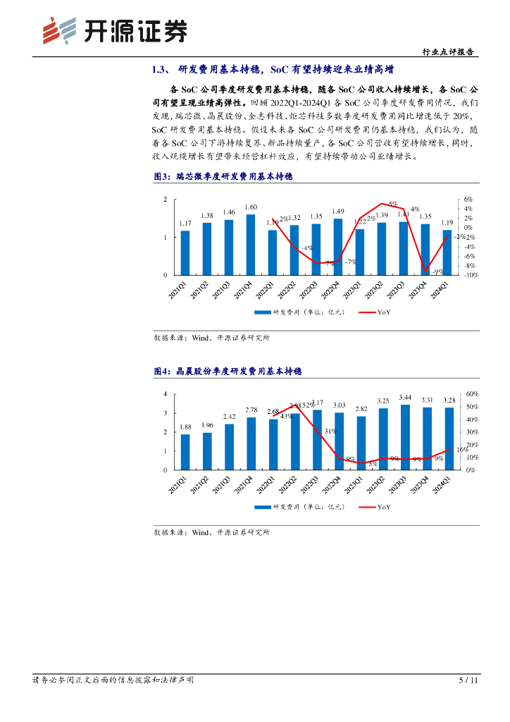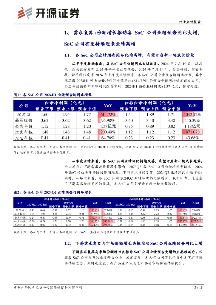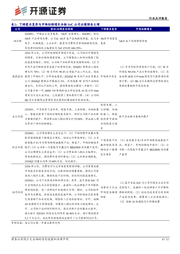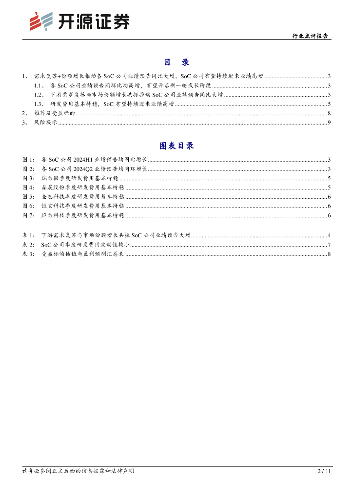开源证券:半导体行业点评报告:下游需求复苏带动SoC公司2024H1业绩预告同比高增,研发费用持稳业绩有望持续高增.pdf
