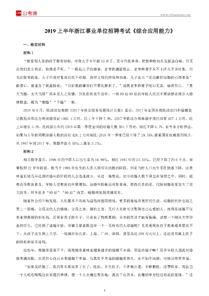 2019上半年浙江省事业单位考试《综合应用能力》真题.pdf