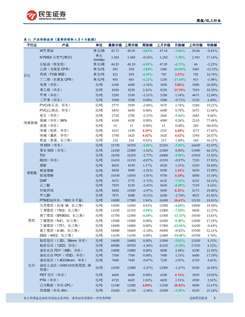 民生证券:民生化工周报:己内酰胺继续领涨,化工品价格多数下跌.pdf
