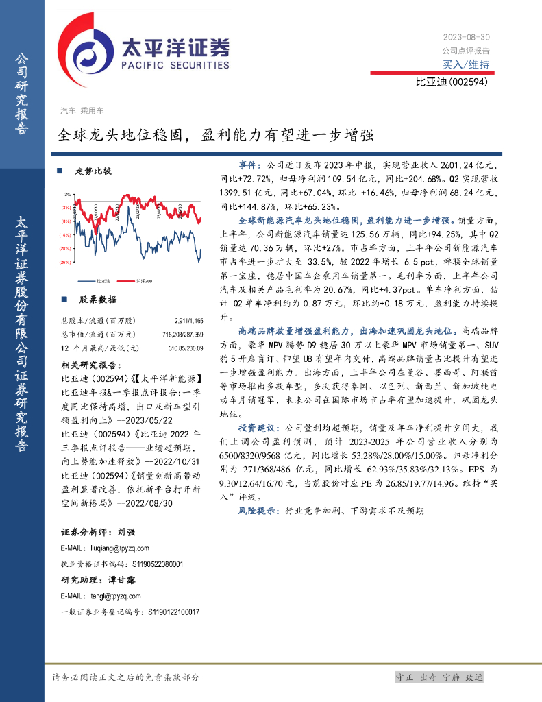 太平洋证券:比亚迪(002594)-全球龙头地位稳固,盈利能力有望进一步增强.pdf