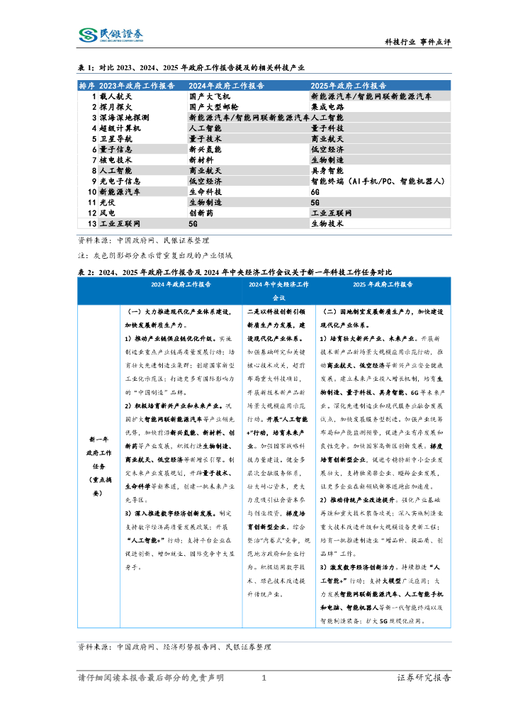 民银证券:科技行业2025政府工作报告解读:聚焦新兴与未来产业,关注“人工智能+”.pdf