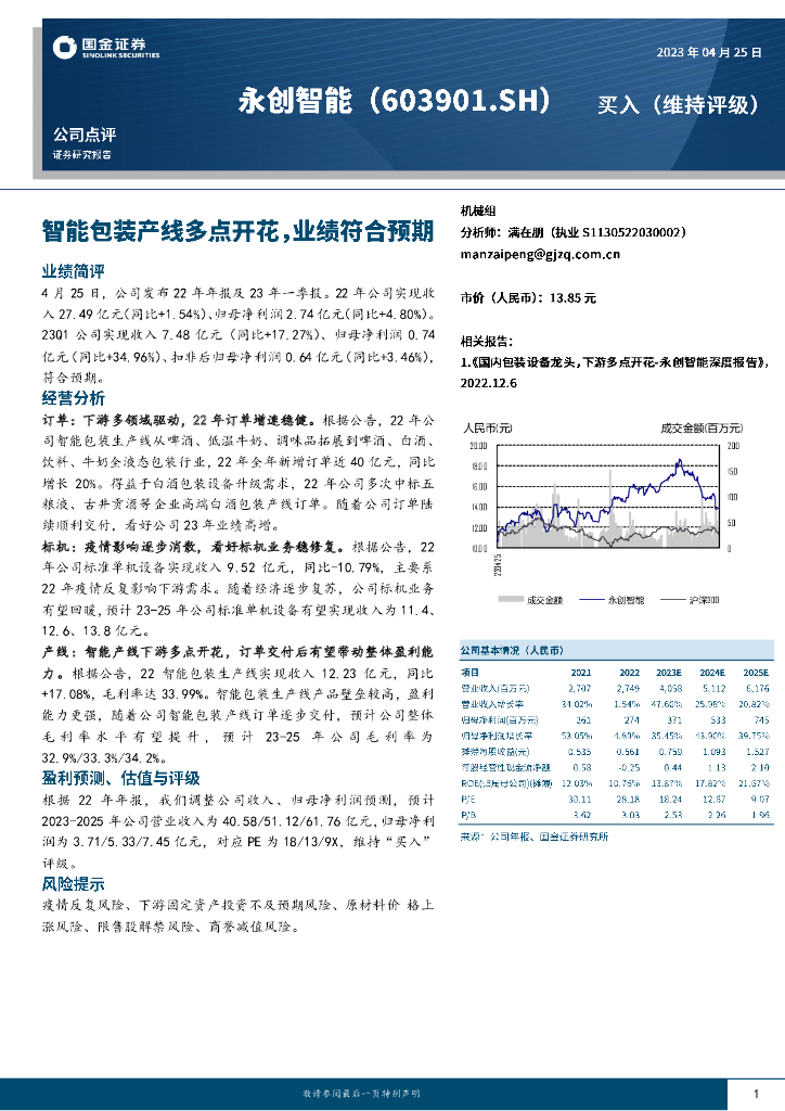 国金证券:永创智能(603901)-智能包装产线多点开花,业绩符合预期.pdf