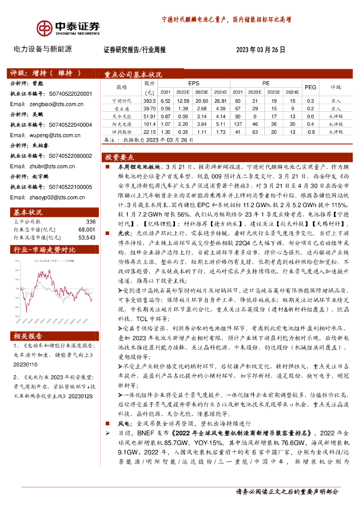 中泰证券:电力设备与新能源行业周报:宁德时代麒麟电池已量产,国内储能招标环比高增.pdf