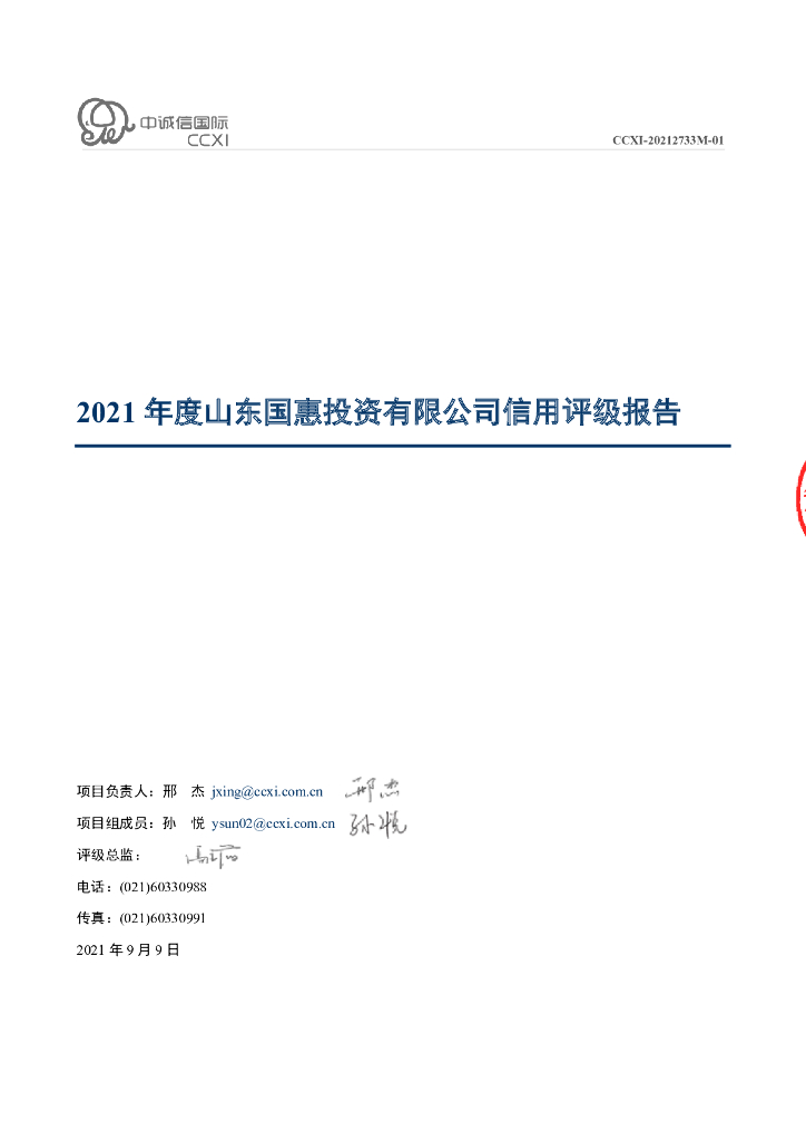 中诚信:2021年度山东国惠投资控股集团有限公司信用评级报告.pdf