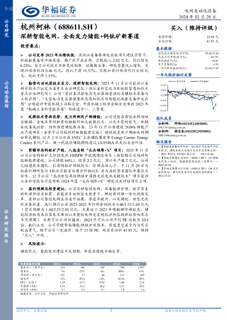 华福证券:杭州柯林(688611)-深耕智能电网,全面发力储能+钙钛矿新赛道.pdf
