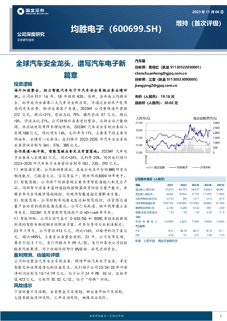 国金证券:均胜电子(600699)-全球汽车安全龙头,谱写汽车电子新篇章.pdf