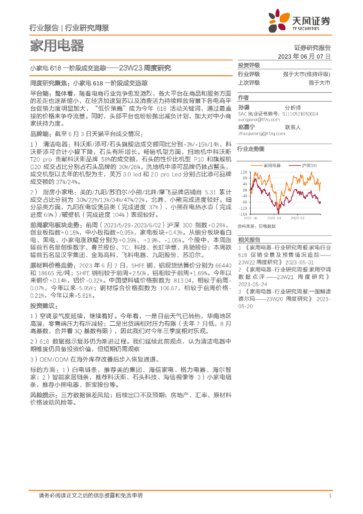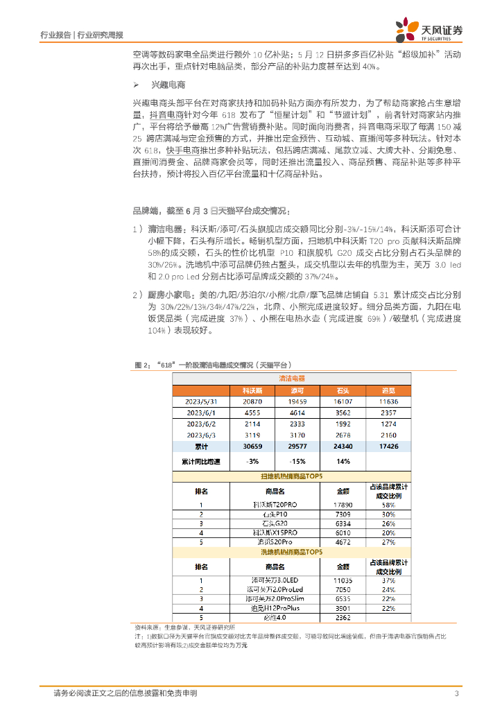 天风证券:家用电器23W23周度研究:小家电618一阶段成交追踪.pdf