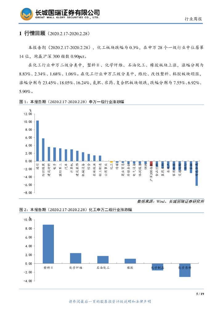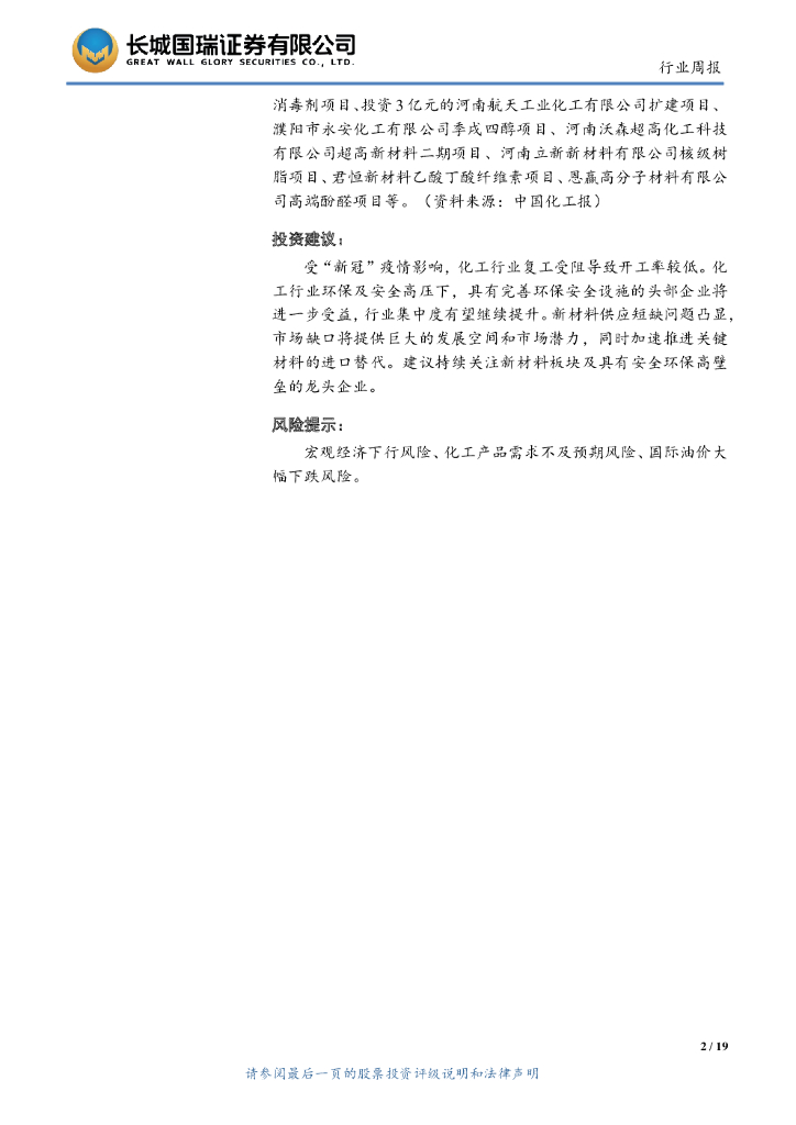 长城国瑞证券:化工行业双周报2020年第4期(总第29期):2019年全国钛白粉行业产量产能双增长 石化民企复工复产率达50%.pdf
