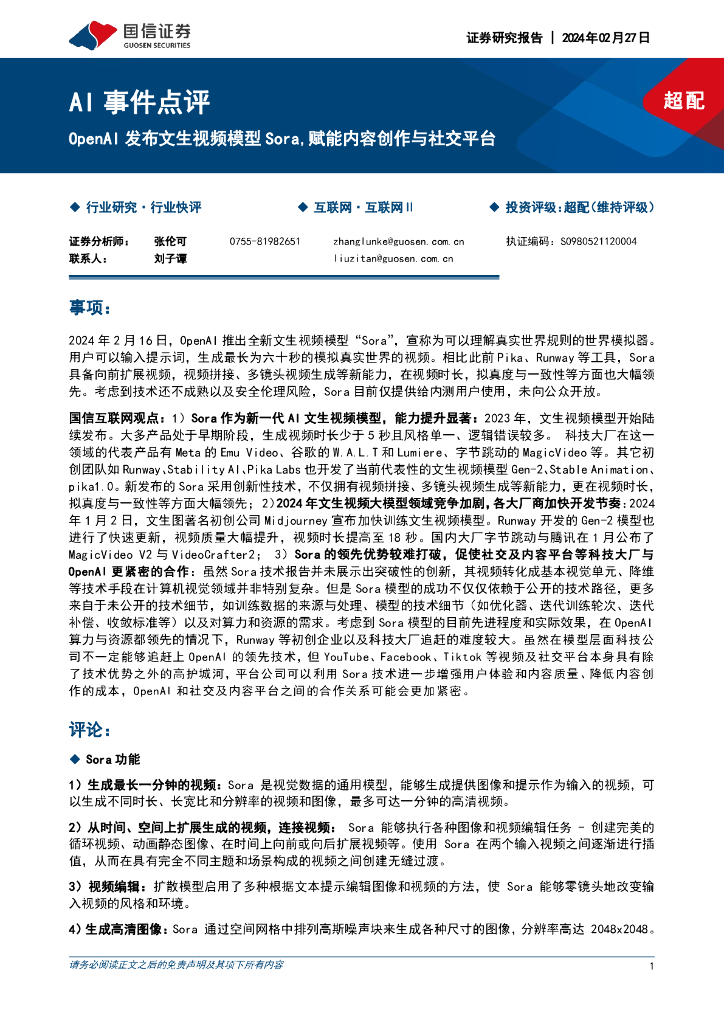 国信证券:AI事件点评:OpenAI发布文生视频模型Sora,赋能内容创作与社交平台.pdf