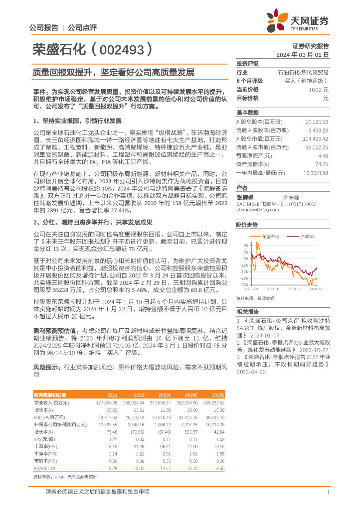 天风证券:荣盛石化(002493)-质量回报双提升,坚定看好公司高质量发展.pdf