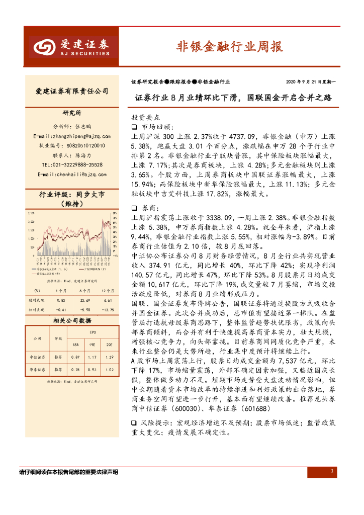 爱建证券:非银金融行业周报:证券行业8月业绩环比下滑,国联国金开启合并之路.pdf
