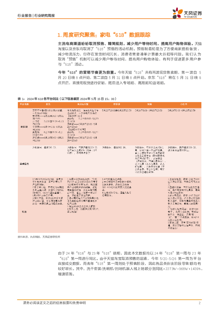 天风证券:家用电器行业24W22周度研究:家电“618”成交数据跟踪.pdf