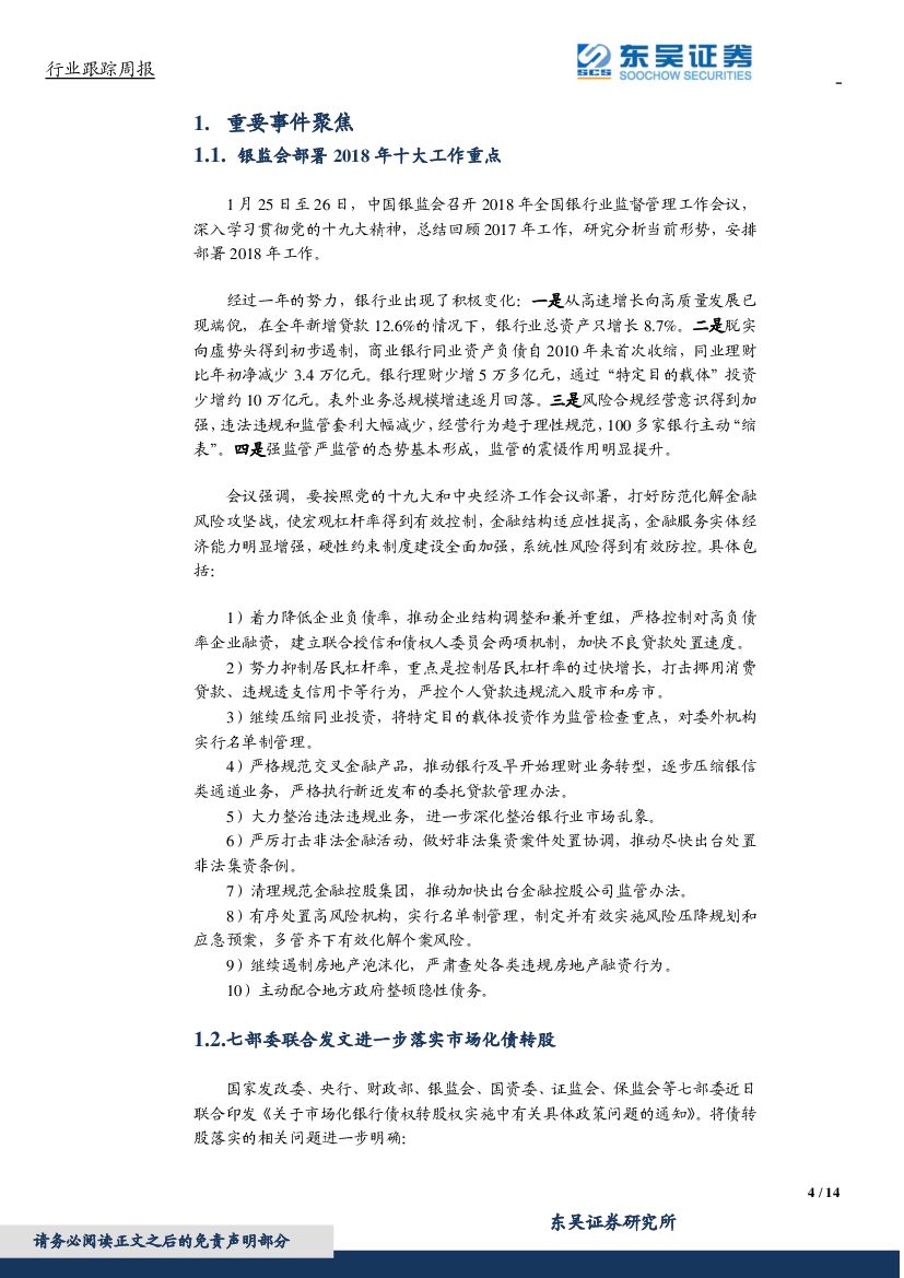 东吴证券:银行行业周报:银监会部署18年工作重点,七部委联合发文加快市场化债转股落实.pdf