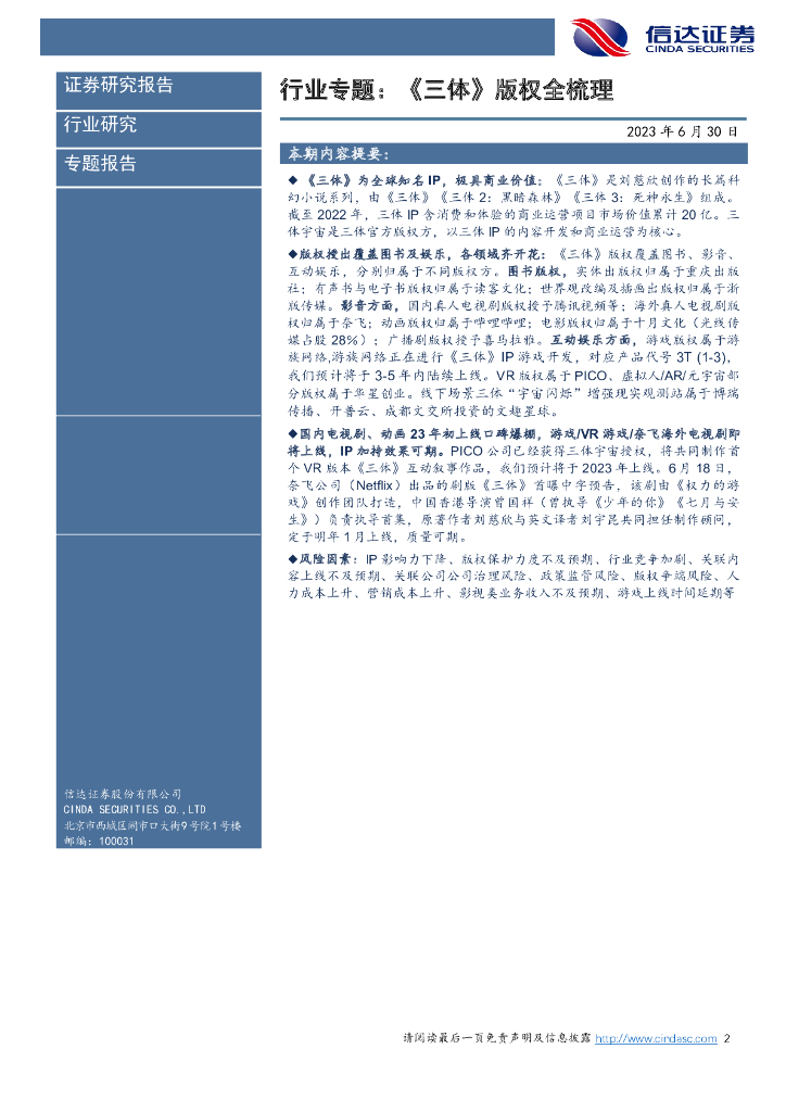 信达证券:传媒互联网行业专题:《三体》版权全梳理.pdf