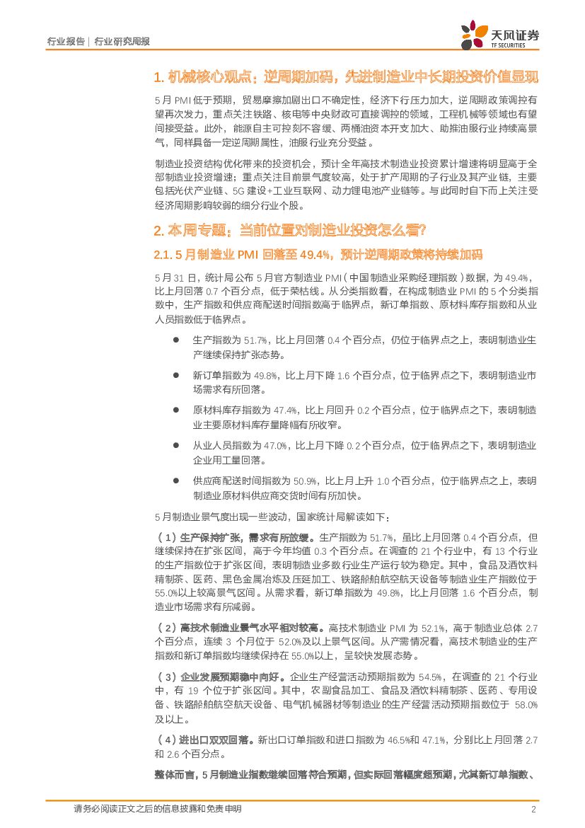 天风证券:机械设备行业研究周报:制造业投资增速磨底,工程机械五月增速好于预期.pdf