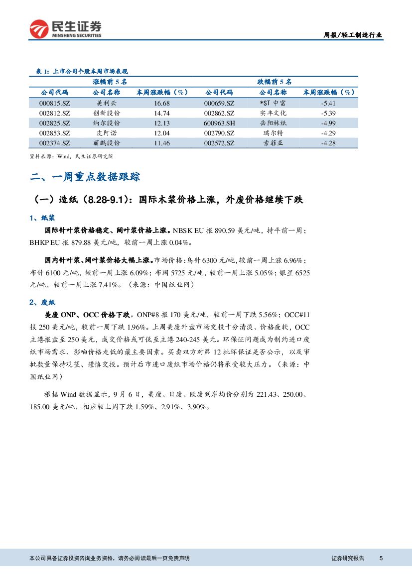 民生证券:轻工制造行业周报:木浆价格上涨、外废价格继续下跌,文化纸旺季来临.pdf
