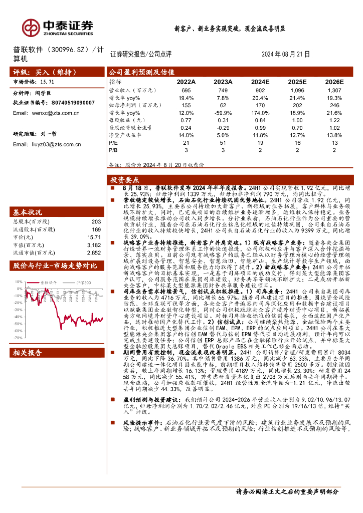 中泰证券:普联软件(300996)-新客户、新业务实现突破,现金流改善明显.pdf