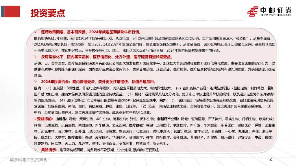 中邮证券:医药行业2024年投资策略:否极泰来正当时,优先布局院内、院外高增长品种.pdf