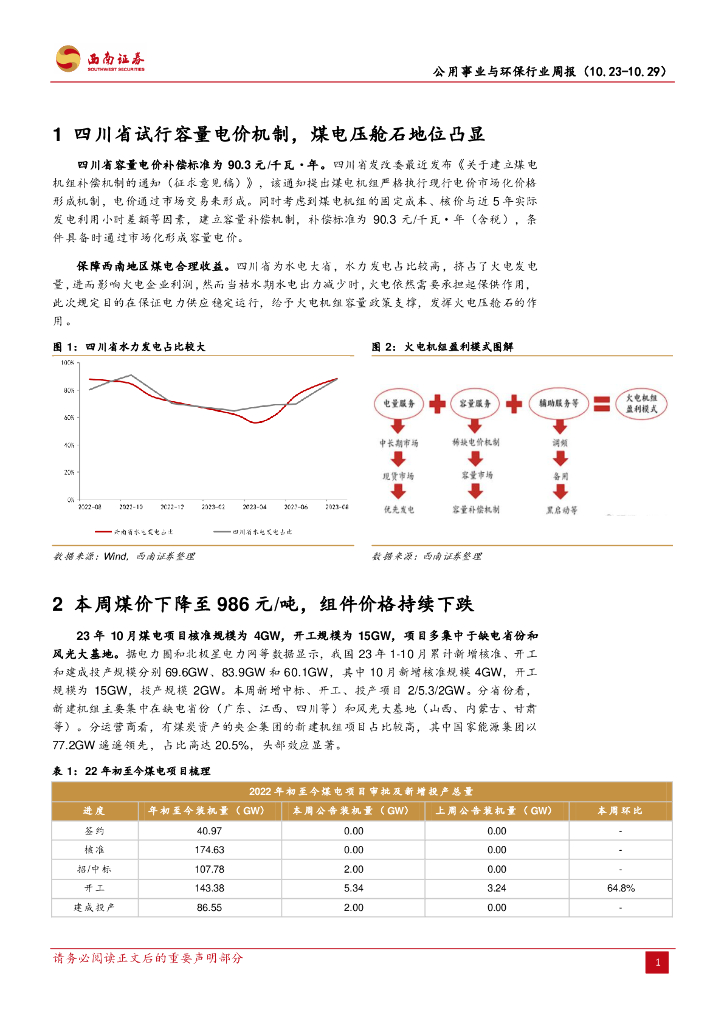 西南证券:公用事业与环保行业周报:四川省试行容量电价机制,煤价逐渐回落.pdf