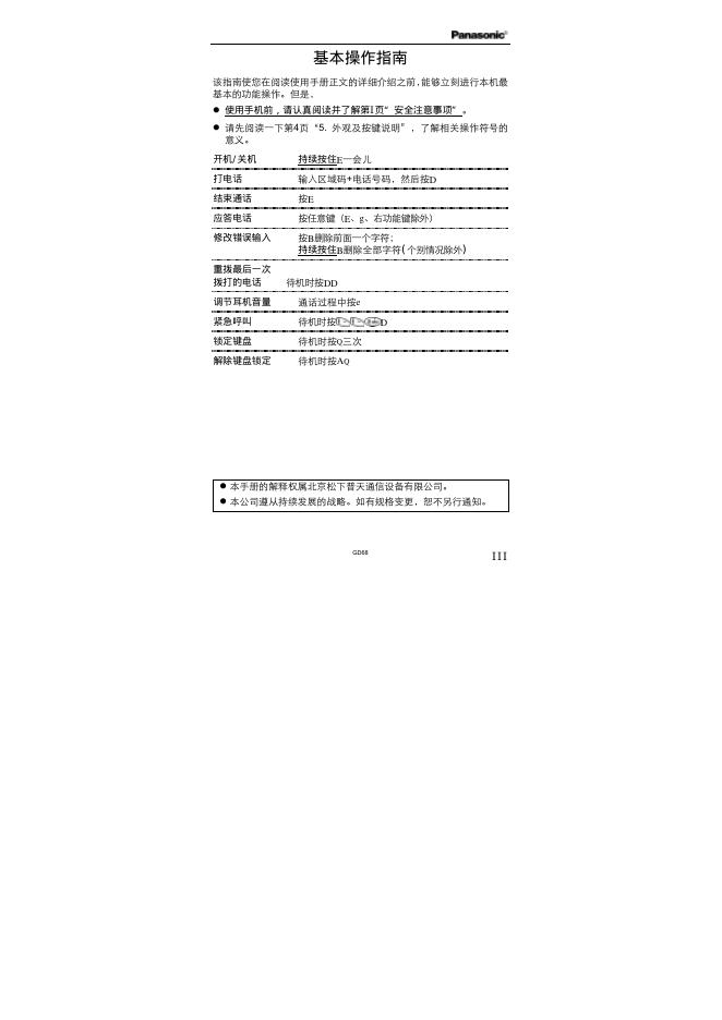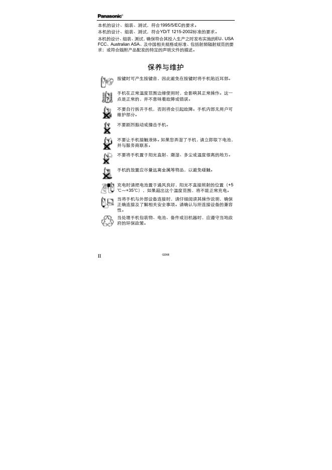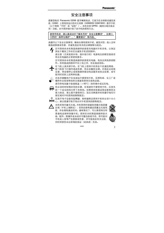 Panasonic GD68 数字蜂窝电话 安全注意事项.pdf