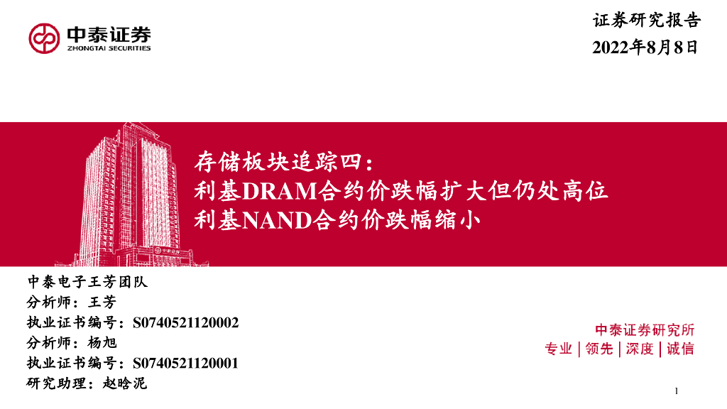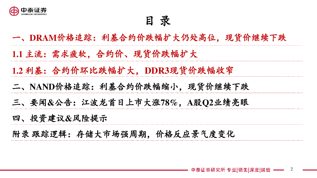 中泰证券:电子:存储板块追踪四:利基DRAM合约价跌幅扩大但仍处高位 利基NAND合约价跌幅缩小.pdf