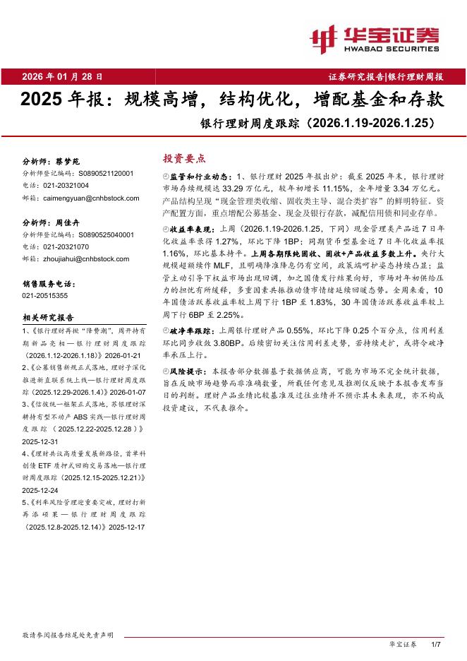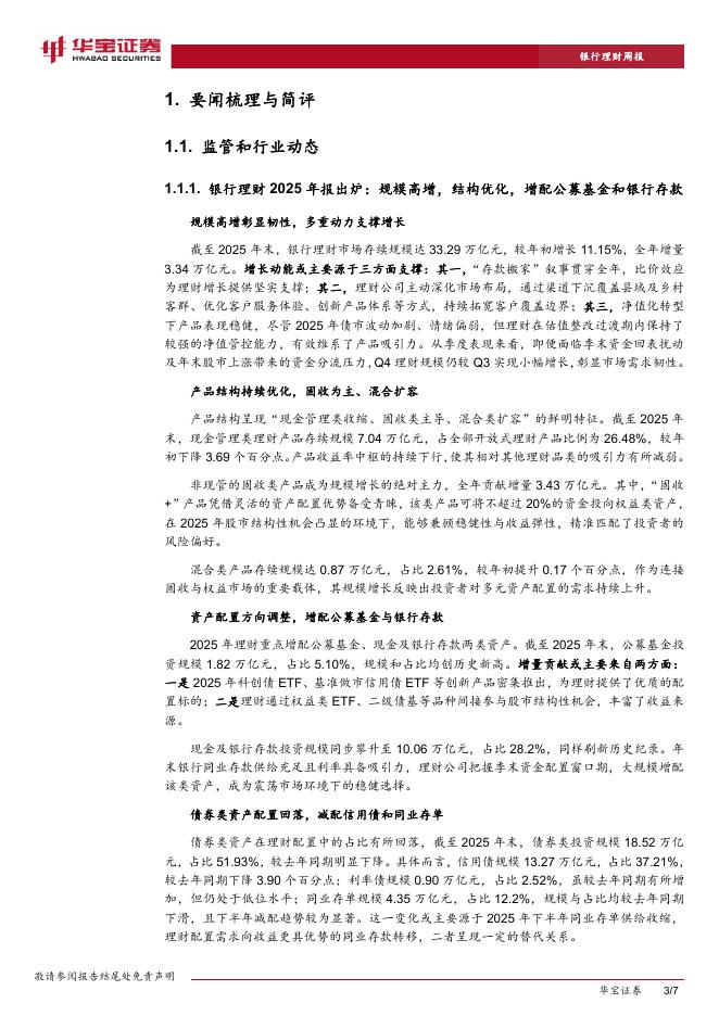 华宝证券:银行理财周度跟踪:2025年报:规模高增,结构优化,增配基金和存款.pdf