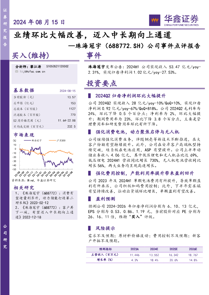 华鑫证券:珠海冠宇(688772)-公司事件点评报告:业绩环比大幅改善,迈入中长期向上通道.pdf